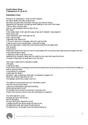 Bathsheba tells of the death of her husband and marriage to King David David’s Wives Thrre: