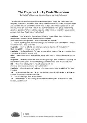 A short humourous sketch for youth groups with the opportunity for everyone to join in. Aims to show that trusting in God doesn't look such a silly option when you think what other people do for "luck"!