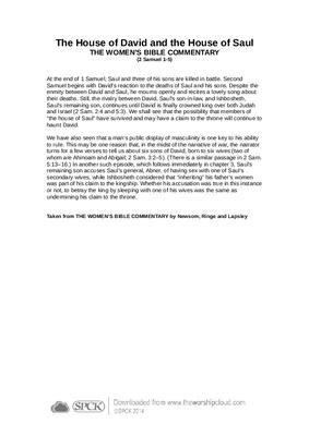 At the end of 1 Samuel, Saul and three of his sons are killed in battle. Second Samuel begins with David’s reaction to the deaths of Saul and his sons…