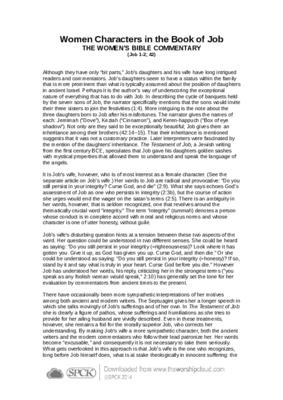 Although they have only “bit parts,” Job’s daughters and his wife have long intrigued readers and commentators. Job’s daughters seem to have a status within the family that is more prominent than what is typically assumed about the position of daughters in ancient Israel. Perhaps it is the author’s way of underscoring the exceptional nature of everything that has to do with Job…