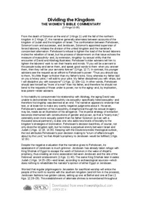 Taken from THE WOMEN’S BIBLE COMMENTARY by Newsom, Ringe and Lapsley