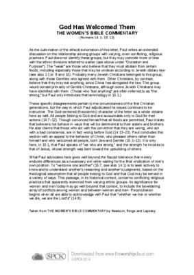 As the culmination of the ethical exhortation of this letter, Paul writes an extended discussion on the relationship among groups with varying, even conflicting, religious practices…