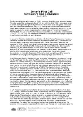The first scene begins with the word of YHWH coming to Jonah in typical prophetic fashion, “Now the word of the Lord came to Jonah” (cf. Jer. 1:4; Hos. 1:1)…