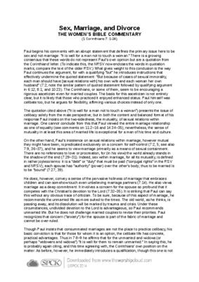 Paul begins his comments with an abrupt statement that defines the primary issue here to be sex and not marriage: “It is well for a man not to touch a woman.”…