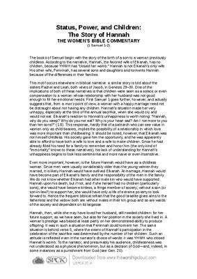The books of Samuel begin with the story of the birth of a son to a woman previously childless. According to the narrative, Hannah, the favored wife of Elkanah, has no children, because YHWH has “closed her womb.” Hannah is not Elkanah’s only wife. His other wife, Peninnah, has several sons and daughters and torments Hannah because of the differences in their families…