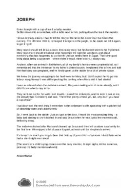Christmas - Joseph, monologue. Joseph reflects on how the nights have not been silent since the birth of Jesus, and remembers the night he was born