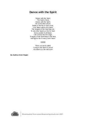 Dance with the Spirit is based on a painting I did of a young girl dancing with a dove. It expresses the Pentecostal joy expressed in danc and music.An inspirational poem.By Audrey Hogan.