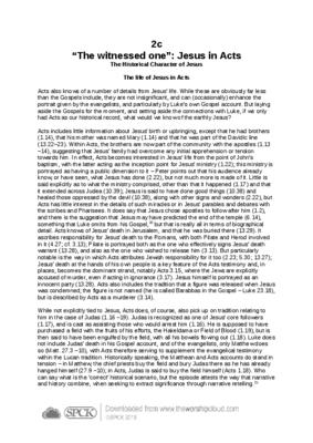 aside the Gospels for the moment, and setting aside the connections with Luke, if we only had Acts as our historical record, what would we know of the earthly Jesus?…