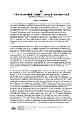 The close similarity between Ephesians and Colossians is a well-established datum of NT scholarship. Ephesians shares, exceeds even, the emphasis on the exaltedness of Christ in Colossians and his supremacy over rulers, powers and authorities (Eph. 1.20 –23).15 It also echoes Colossians’ focus on Christ’s death, but attends more to its theological significance and efficacy (cf. Eph. 2.13 –22), rather than addressing the historical ‘actuality’ of the event…