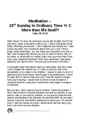 Meditation – 23rd Sunday in Ordinary Time Yr C