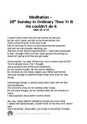 Meditation – 28th Sunday in Ordinary Time Yr B