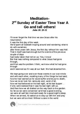 I’ll never forget the first time we saw Jesus after his resurrection. It was the first day of the week. We’d spent all Sabbath moping around and wondering what to do with ourselves; after three years with Jesus, the first day without him was Hell. That in itself was bad enough but the events of the previous couple of days had really taken their toll on us. Yes, I know! But that was nothing compared to what Jesus had gone through, and that was the problem I think; we knew what he had gone through and it seemed as if it was all our fault...