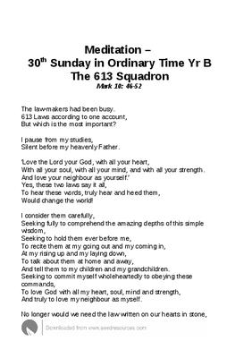 meditation - 30th Sunday in Ordinary Time Year B