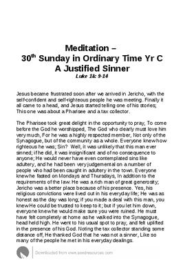 Meditation – 30th Sunday in Ordinary Time Yr C