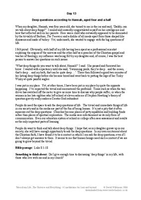 ‘What deep things do you want to talk about, Hannah?’ I said. She paused and furrowed her