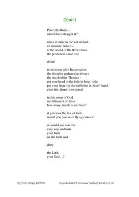 Poetic reflection on Peter's denial of Jesus.