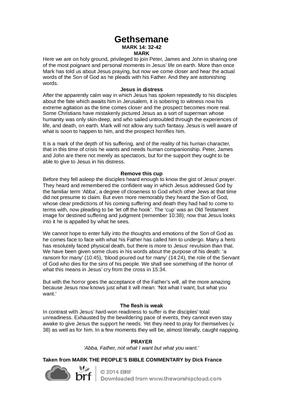 Here we are on holy ground, privileged to join Peter, James and John in sharing one of the most poignant and personal moments in Jesus’ life on earth. More than once Mark has told us about Jesus praying, but now we come closer and hear the actual words of the Son of God as he pleads with his Father. And they are astonishing words…