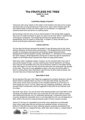Interwoven with Jesus’ attack on the traders in the temple is the story of his cursing and destruction of a fig tree because it had no fruit. Jesus’ other miracles save life and restore health, but this one seems quite out of character. It is apparently wantonly destructive and serves no useful purpose…
