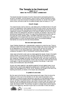 The temple has been the scene of most of Jesus’ activity and teaching since he arrived in Jerusalem. Now he leaves it, never to return, and as he leaves he utters words which must have shocked his disciples profoundly. No wonder that yet again some of them will have to ask him to explain privately what he means (vv. 3–4)…