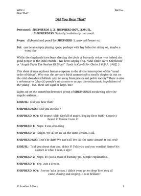 May also slot into a performance of Roger Jones' musical 'While Shepherds Watched'