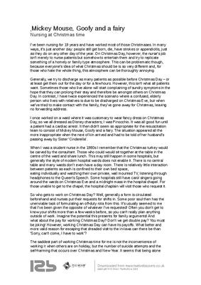 I’ve been nursing for 19 years and have worked most of those Christmases. In many ways, it’s just another day: people still get born, die, have strokes or appendicitis, just as they do on any other day of the year. On Christmas Day, however, the nurse’s job isn’t merely to nurse patients but somehow to entertain them and try to replicate something of a homely or family type atmosphere. This can be problematic though, because everyone’s idea of what Christmas should be is so very different and, for those who hate the whole thing, this atmosphere can be thoroughly annoying.