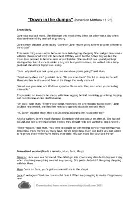 This is a short simple reflection on an everyday incident, suitable for use as a short address. A drama version is also supplied. The accompanying meditation draws attention to the availability of Jesus as our carrier and can be used as a prayer to lift our spirits.