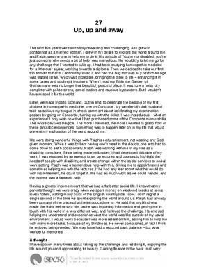 The next five years were incredibly rewarding and challenging. As I grew in confidence as a married woman, I grew in my desire to explore the world around me, and Ralph was the one to help me to do it. His attitude of ‘You’re not disabled, you’re just someone who needs a bit of help’ was marvellous. He would try to let me go for any challenge that I wanted to take up. I had been studying homeopathic medicine for a little over a year, working towards a diploma. Then we decided to take our first trip abroad to Paris. I absolutely loved it and had the bug to travel. My next challenge was visiting Israel, which was incredible, bringing the Bible to life – enhancing it in some cases and spoiling it in others. When I read my Bible the Garden of Gethsemane was no longer that beautiful, peaceful place. It was now a noisy city complete with police sirens, camel traders and raucous bystanders. But I wouldn’t have missed it for the world...