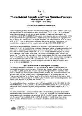 Matthew’s portrayal of the disciples is more complimentary than Mark’s.23 Where Mark says that the disciples do not understand Jesus’ words (Mark 4:13; 6:52; 8:21; 9:10), Matthew either has no reference to their lack of understanding or states that the disciples do understand (13:16–17, 51; 16:12)…