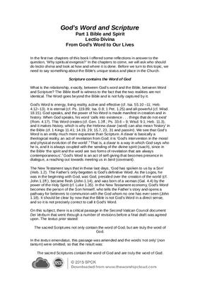 In the first two chapters of this book I offered some reflections in answer to the question, ‘Why spiritual exegesis?’ In the chapters to come, we will ask who should do lectio divina and look at how and where it is done. Before we turn to this topic, we need to say something about the Bible’s unique status and place in the Church…