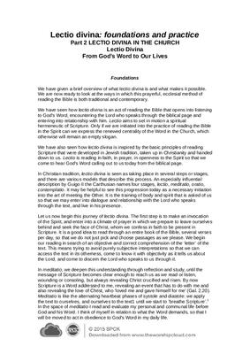We have given a brief overview of what lectio divina is and what makes it possible. We are now ready to look at the ways in which this prayerful, ecclesial method of reading the Bible is both traditional and contemporary…