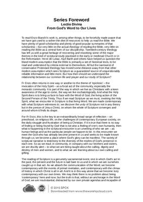 To read Enzo Bianchi’s work is, among other things, to be forcefully made aware that we have got used to a rather thin diet of resources to help us read the Bible. We have plenty of good scholarship and plenty of good popular summaries of that scholarship – but very little on the actual theology of reading the Bible, very little on reading the Bible as a central form of our discipleship. Twentieth-century theology has left us with a great heritage of recovering and reworking some of the major themes in the kind of scriptural study practised in the early or medieval Church or in the Reformation: Henri de Lubac, Karl Barth and others have helped us question the bland modern assumption that the Bible is primarily a set of historical texts, to be read and understood by criteria external to themselves…