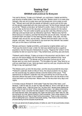 A Christian song by Michael W. Smith called “Open the Eyes of My Heart, Lord” declares, “I want to see You; to see You high and lifted up, shinin’ in the light of Your glory.” Another song, “I Want to Know You,” by Andy Park, several times repeats the plea, “I want to see your face.” When singing these songs, I am always also asking myself what I mean, and what the other people in the congregation mean. I guess I do know what we mean; that opening line “Open the eyes of my heart” tells me. We are asking for an inner sense of being in God’s presence. Other songs rejoice in the idea of seeing the Lord “face to face” at the resurrection. There is also a visionary kind of seeing the Lord, a sense of physically seeing. Then there is the more literal physical seeing that the disciples experienced...