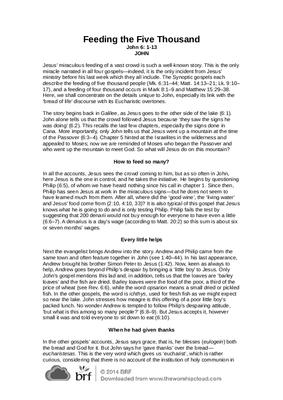Jesus’ miraculous feeding of a vast crowd is such a well-known story. This is the only miracle narrated in all four gospels—indeed, it is the only incident from Jesus’ ministry before his last week which they all include. The Synoptic gospels each describe the feeding of five thousand people (Mk. 6:31–44; Matt. 14:13–21; Lk. 9:10–17), and a feeding of four thousand occurs in Mark 8:1–9 and Matthew 15:29–38. Here, we shall concentrate on the details unique to John, especially its link with the ‘bread of life’ discourse with its Eucharistic overtones…