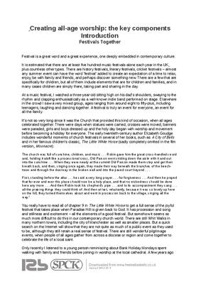 It is estimated that there are at least five hundred music festivals alone each year in the UK, plus countless other types. There are history festivals, literary festivals, cricket festivals – almost any summer event can have the word ‘festival’ added to create an expectation of a time to relax, enjoy, be with family and friends, and perhaps discover something new. There are a few that are specifically for children, but all of them include elements that are for children and families, and in many cases children are simply there, taking part and sharing in the day...