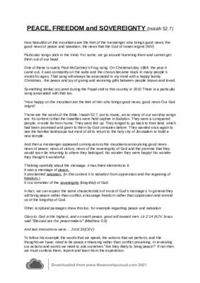 This reflection/short sermon analyses Isaiah 52:7, paying particular attention to the content of the message and the role of messengers Comparison is made with other New Testament verses and conclusions are applied to todays believers.