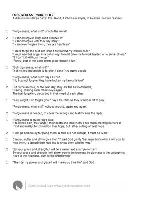 A short dialogue for two voices looking at the need and impossibility of forgiveness, forgiving.