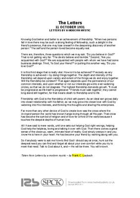 Knowing God better and better is an achievement of friendship. “When two persons fall in love there may be such a strong feeling of fellowship, such a delight in the friend’s presence, that one may lose oneself in the deepening discovery of another person.” The self and the person loved become equally real...
