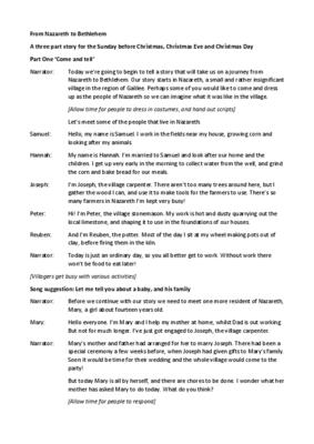 A three-part story designed for the Sunday before Christmas, Christmas Eve and Christmas Day