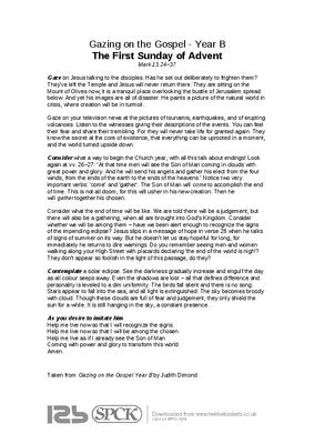 Taken from Gazing on the Gospel Year B by Judith Dimond