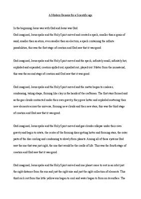 This is a re-writting of the Genesis creation account for the scientific age which I wrote for a module at college.