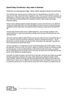 The first time that I saw this group of Henry Moore's 'Upright Motives' the picture of the three Good Friday crucifixions came instantly to mind. The very fact that this is abstract art challenges our minds to make sense, find sense and feel that there is sense here. Yet the utter otherness and unlikeness of the sculptures seems to defy cheap and simple meaning-making.