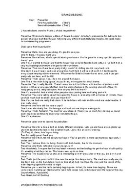 Presenter Welcome to today's edition of 'Grand Designs'. In today's programme I'm talking to two people who have built their houses following very different architectural principles. It should make for an interesting programme.