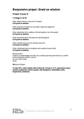 24 July 2011, Sixth Sunday after Pentecost, 1 Kings 3: 5-12, responsive prayer,