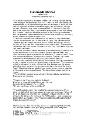 When you go into a store in my country, and you see a sign saying ‘Made by Hand’, you know what it means. ‘This is good quality; it wasn’t just turned out by some faceless machine or computer; someone has taken personal trouble over it; you will appreciate it!’ (And, of course, ‘Please buy it!’) This applies whether it’s a sweater or a wood carving, a pair of shoes or a piece of furniture...