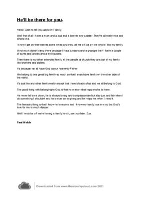 A puppet sketch on belonging to a a family and God's family and knowing he'll always be there for you.