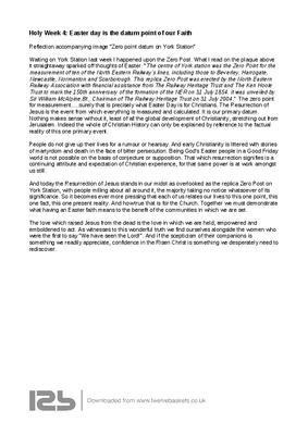 Waiting on York Station last week I happened upon the Zero Post. What I read on the plaque above it straightaway sparked off thoughts of Easter. "The centre of York station was the Zero Point for the measurement of ten of the North Eastern Railway's lines, including those to Beverley, Harrogate, Newcastle, Normanton and Scarborough. This replica Zero Post was erected by the North Eastern Railway Association with financial assistance from The Railway Heritage Trust and The Ken Hoole Trust to mark the 150th anniversary of the formation of the NER on 31 July 1854. it was unveiled by Sir William McAlpine,Bt., Chairman of The Railway Heritage Trust on 31 July 2004." The zero point