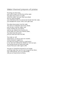 Prayers of praise the draw on the images of water in the bible, from the waters hovering of the chaos in Genesis, the red sea parting, the baptism of Jesus and more