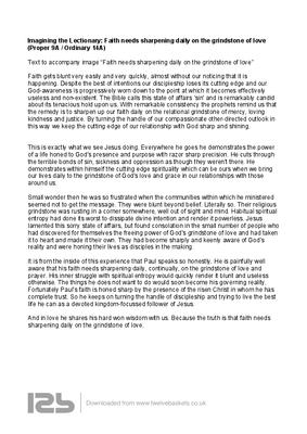 Imagining the Lectionary: Faith needs sharpening daily on the grindstone of love (Proper 9A / Ordinary 14A)