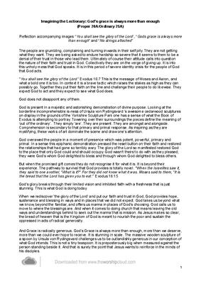 “You shall see the glory of the Lord.” Exodus 16:7 This is the message of Moses and Aaron, and what a bold one it is too. In context it is a brave tactic which raises the stakes as high as they can possibly go. Together they put their faith on the line and challenge their people to do likewise. They expect God to act and they expect to see what God does.