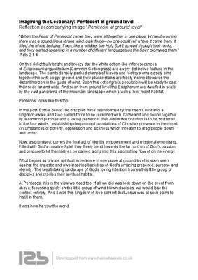 "When the Feast of Pentecost came, they were all together in one place. Without warning there was a sound like a strong wind, gale force—no one could tell where it came from. It filled the whole building. Then, like a wildfire, the Holy Spirit spread through their ranks, and they started speaking in a number of different languages as the Spirit prompted them."